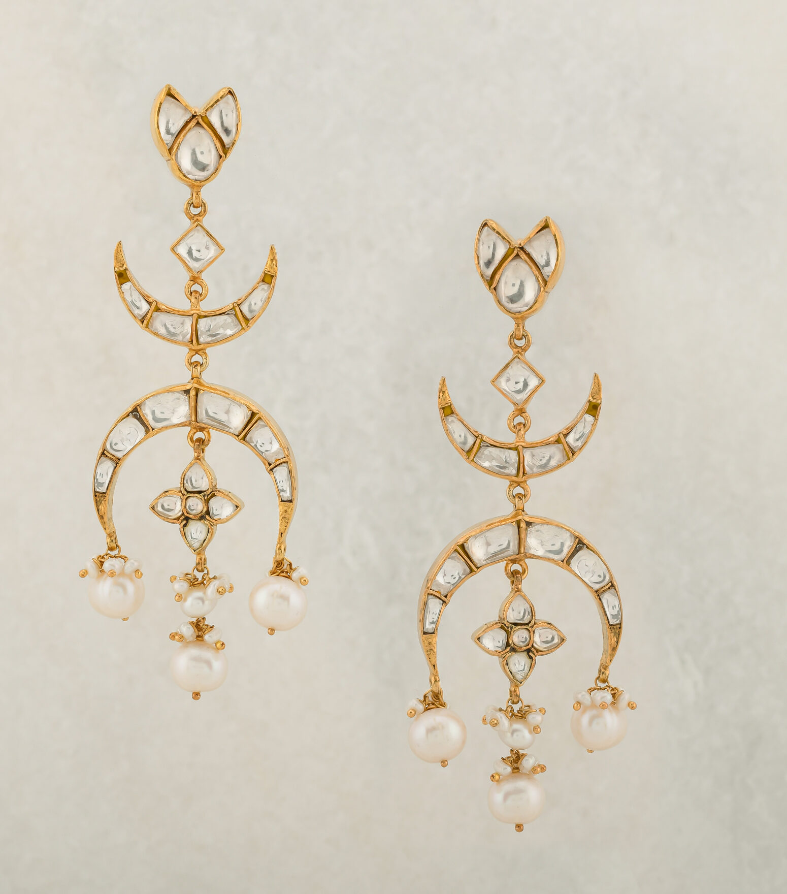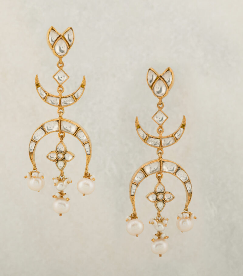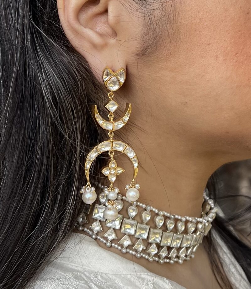 Made with love by skilled artisans of Jaipur, Crescent Moon Kundan Earrings are contemporary earrings inspired by mughal motifs. Create minimal yet statement presence, pair it with silk cami dress to create a modern maharani look.