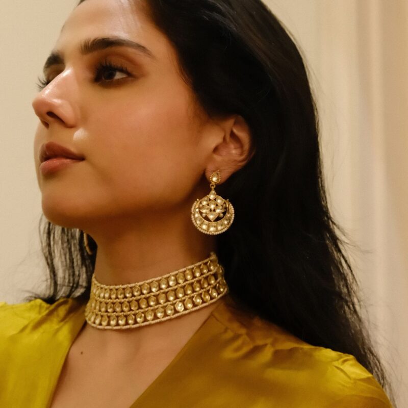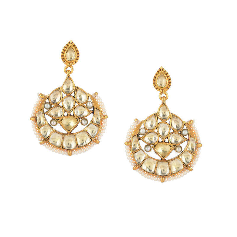 Handcrafted in silver with gold plating, deco silver kundan earrings are light weight earrings perfect for all occasions.